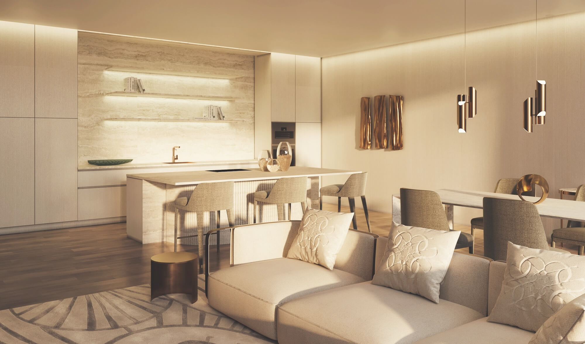 The interiors of STELLAR by ELIE SAAB reflect ELIE SAAB’s vision of elegance and harmony, defined by purity of line, proportion, and craft. Conceived with the House’s distinctive sense of style, the spaces feature furniture and décor from the ELIE SAAB Maison collection, bringing depth, comfort, and enduring beauty to each room.